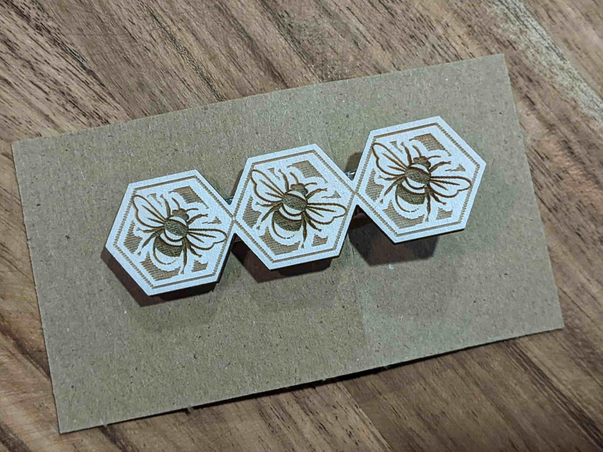 Engraved wooden Bee Hive hair clip.